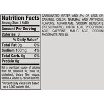 Diet by DR PEPPER nutrition facts and analysis. 0 %. Sodium 60mg. 3 %. Total Carbohydrate 0g. 0 %. Protein 0g. 0 %. * The % Daily Value (DV) tells you how much a nutrient in a serving of food contribute to a daily diet. 2000 calories a day is used for general nutrition advice. Share by URL.