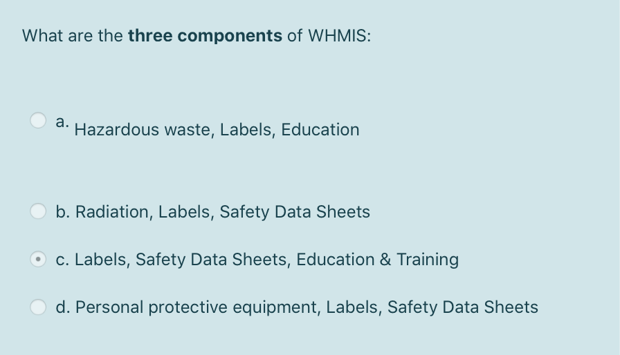 WHMIS 2015 - General : OSH Answers - Canadian Centre for Occupational ... Suppliers and employers must use and follow the WHMIS 2015 requirements for labels and safety data sheets (SDSs) for hazardous products sold, distributed, or imported into Canada. Please refer to the following OSH Answers documents for information about WHMIS 2015: WHMIS 2015 - Pictograms. WHMIS 2015 - Labels.